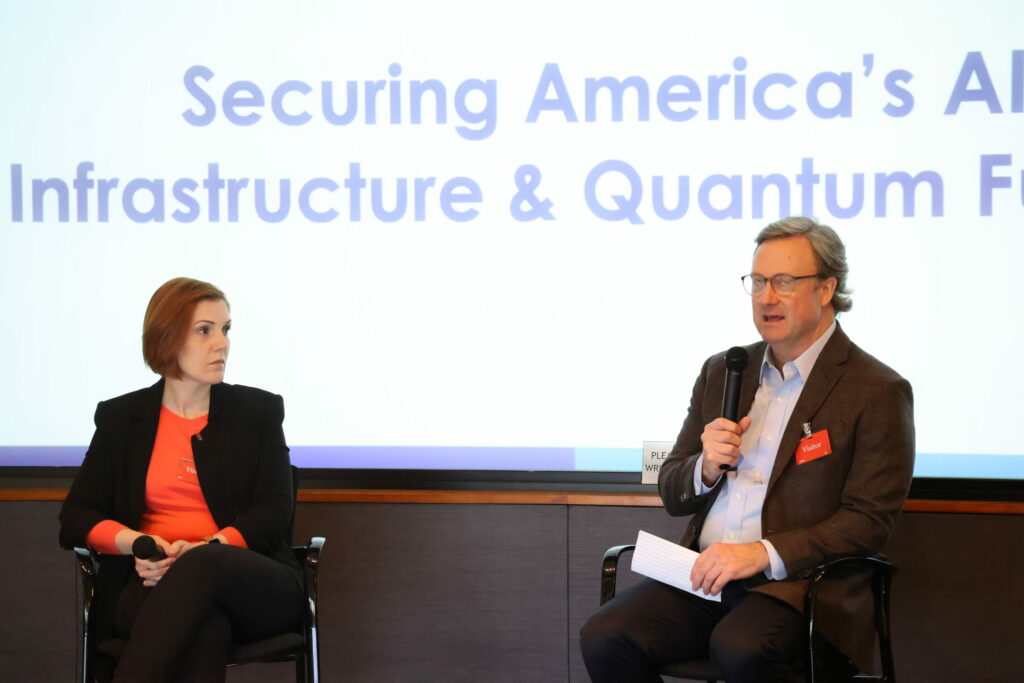 The program opened with a panel discussion focused on the core theme of the day: securing America’s AI infrastructure and quantum future. Panelists emphasized the opportunity — and responsibility — for policymakers to help set the trajectory for these technologies through trusted, sustained partnership with industry.